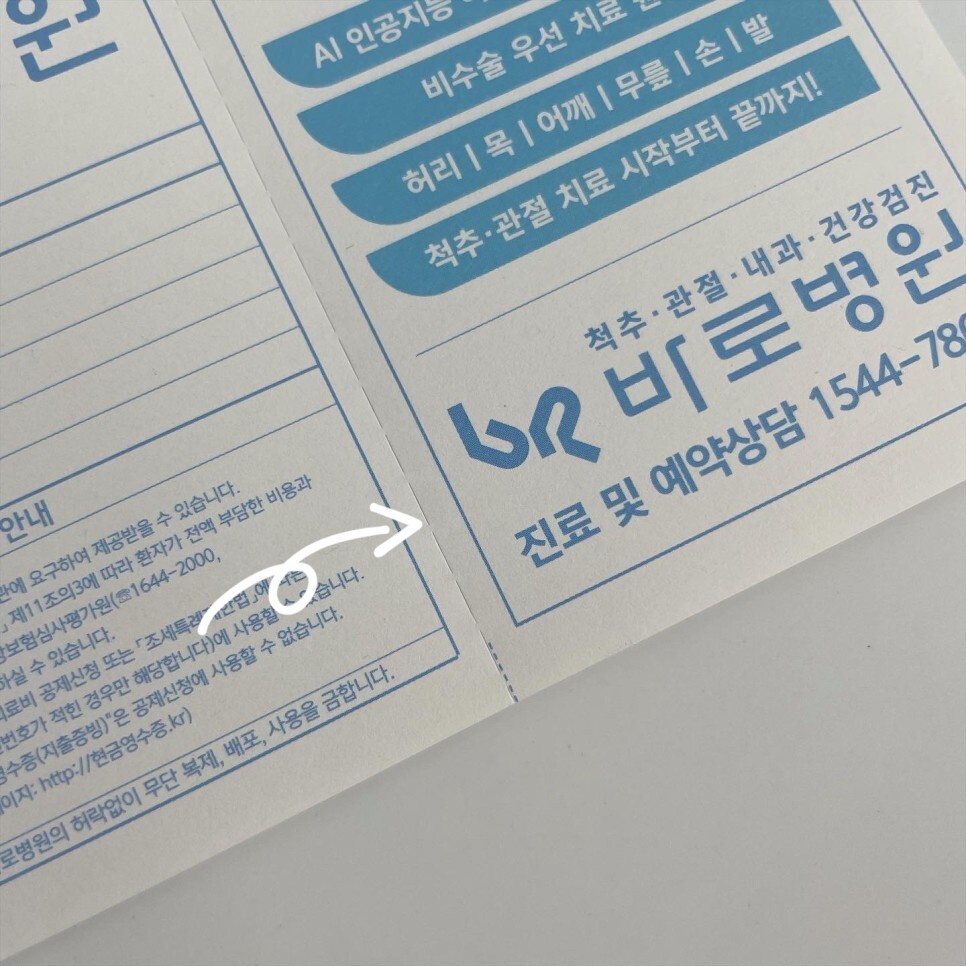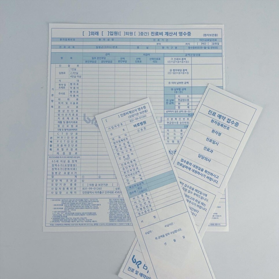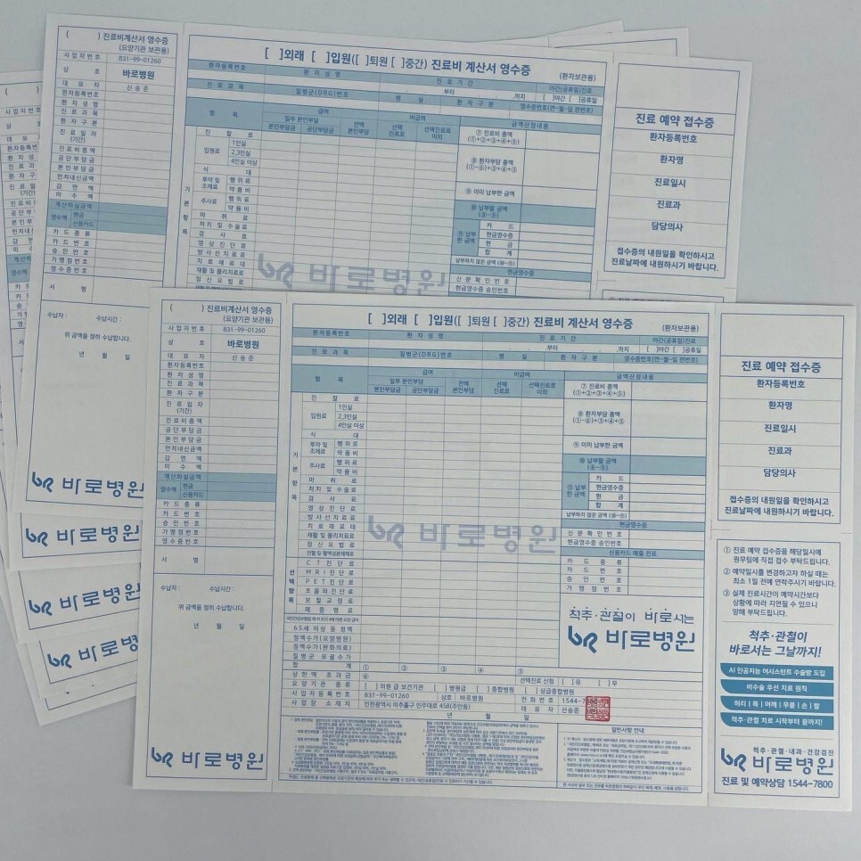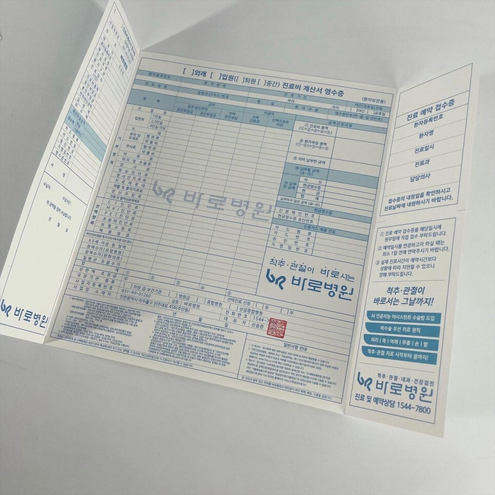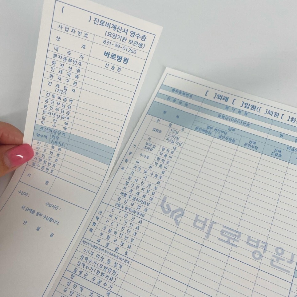 양쪽에 미싱 가공을 해서 접수증과 요양기관 보관용으로