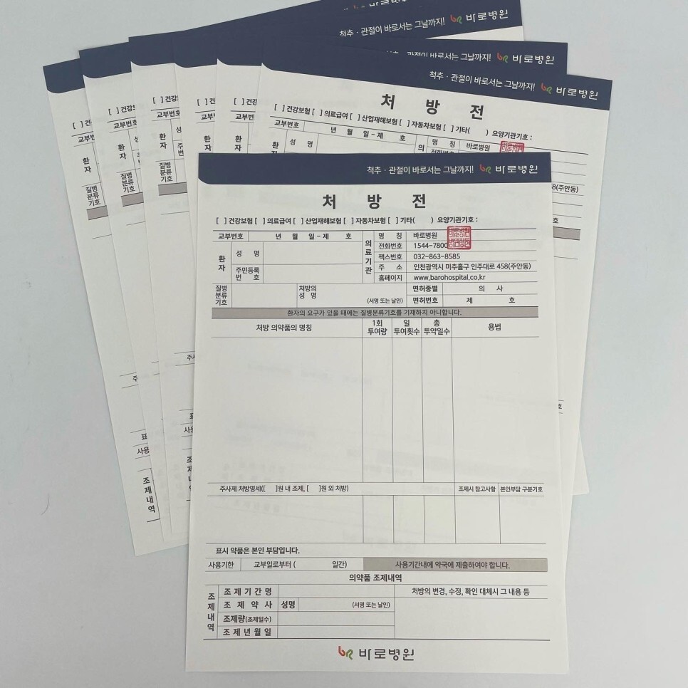 처방전도 기존 주문 건과 같은 디자인으로 출력되었습니다.