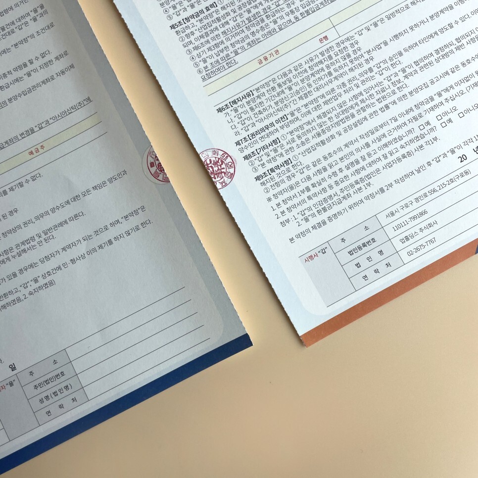 등 다양한 형태의 계약서의 디자인 및 인쇄까지도