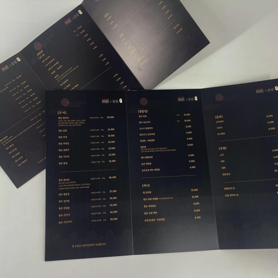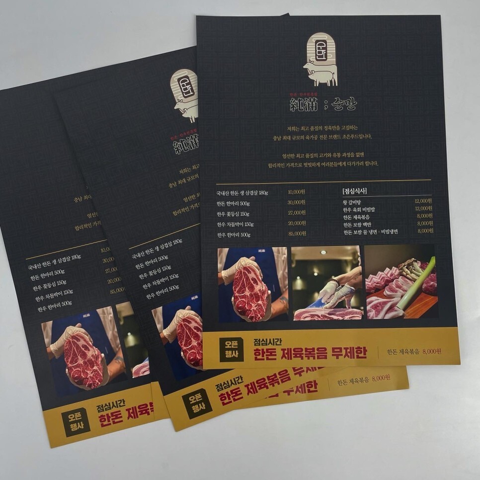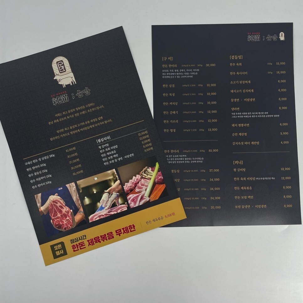 메뉴 안내 전단이나 식당 내 테이블마다 있는 메뉴판에