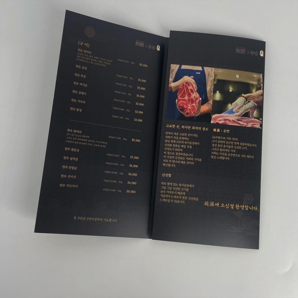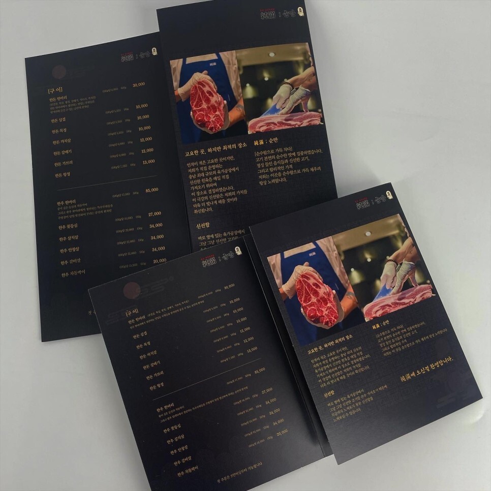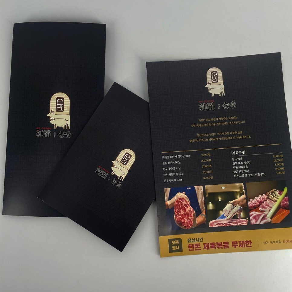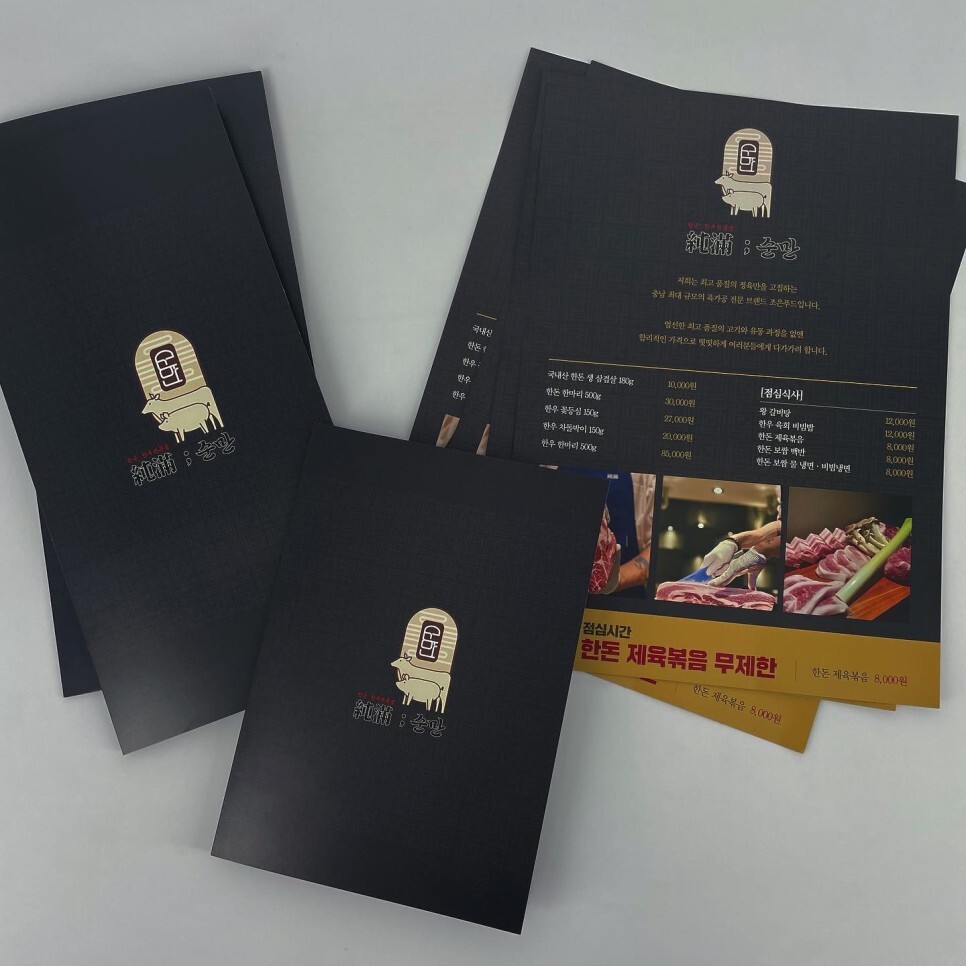 전단, 리플릿 모두 스노우지로 블랙 컬러에 무광까지