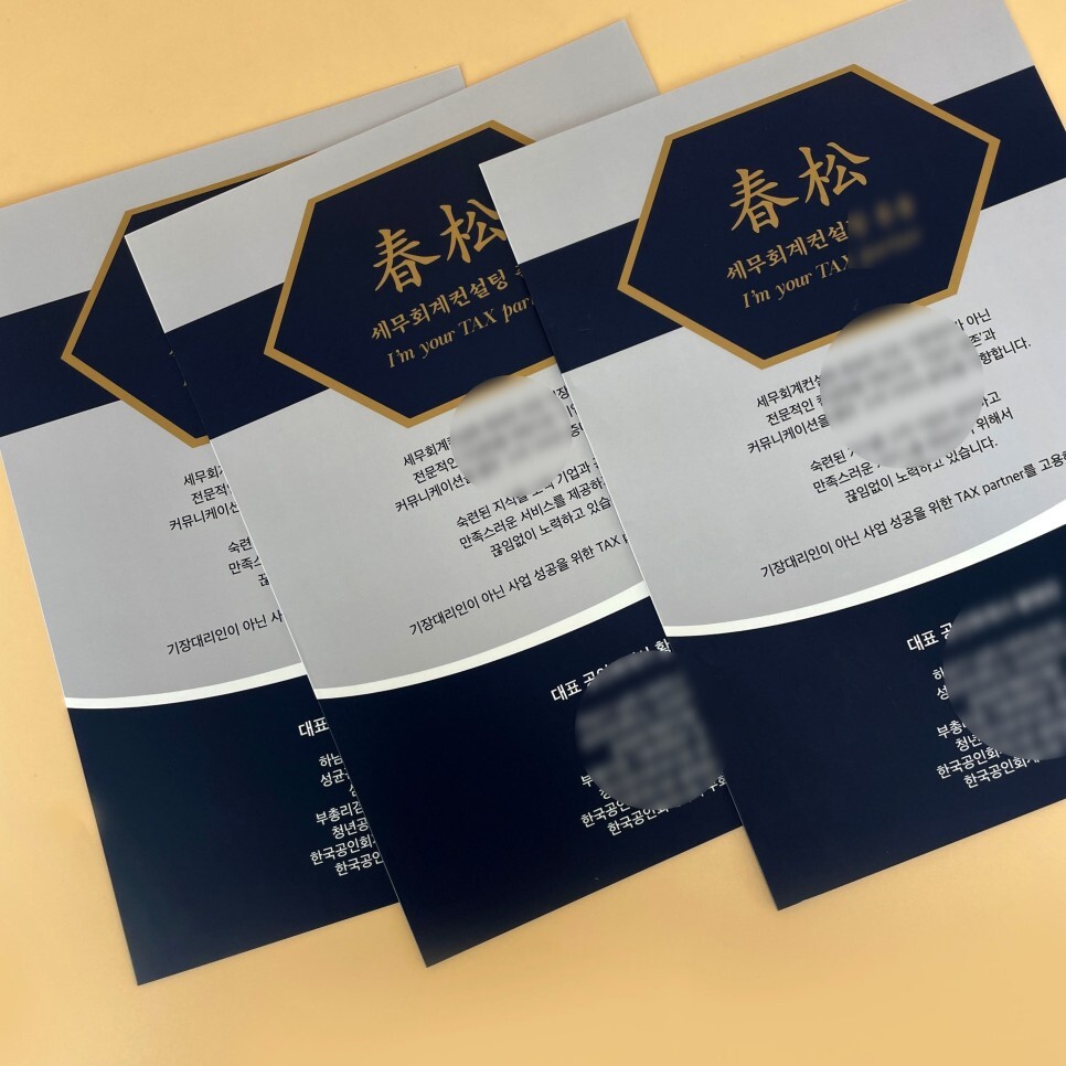 두 가지 모두 로고가 무채색이라 크게 컬러를 넣지 않은 깔끔한 인쇄물입니다.