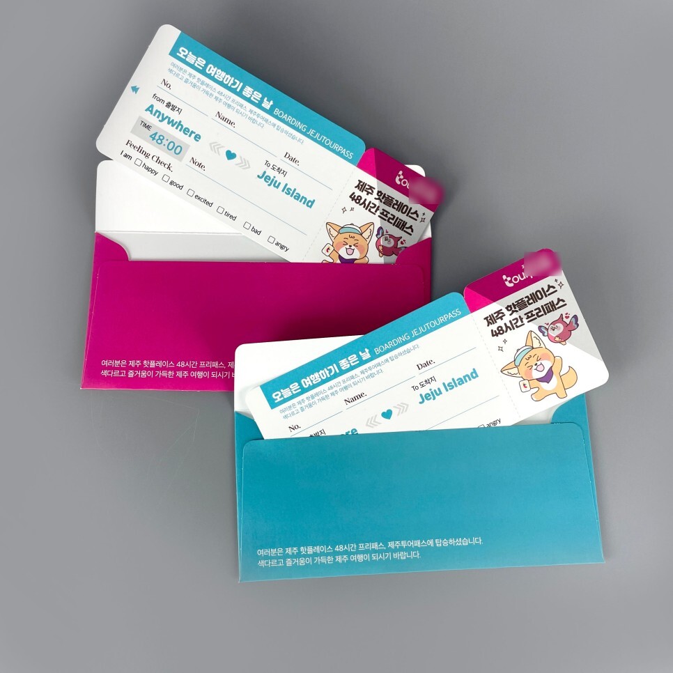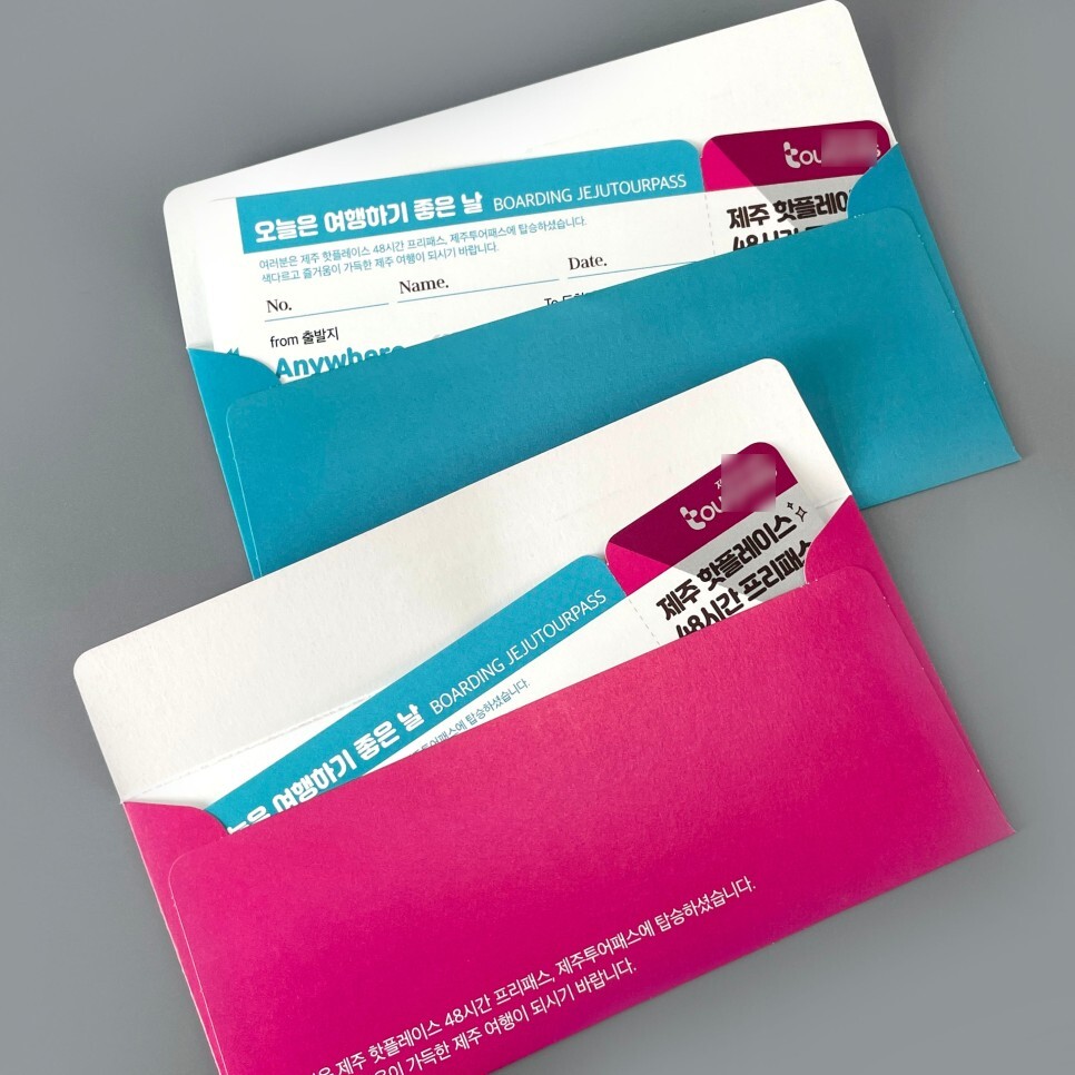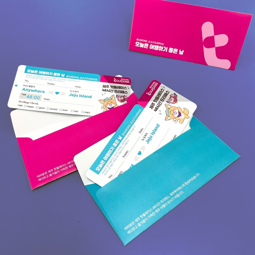 한 여행사에서 제작해 주신 티켓과 봉투 세트 인쇄물을