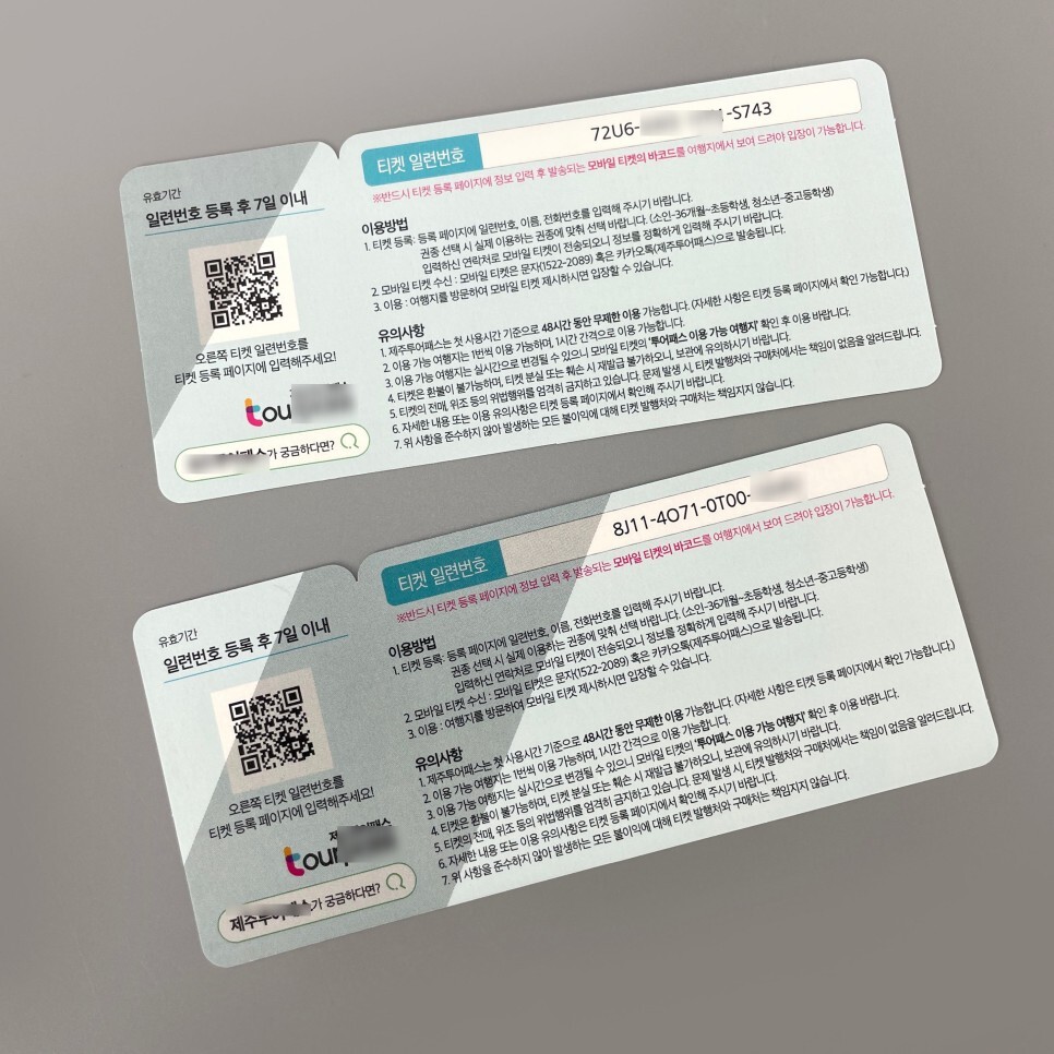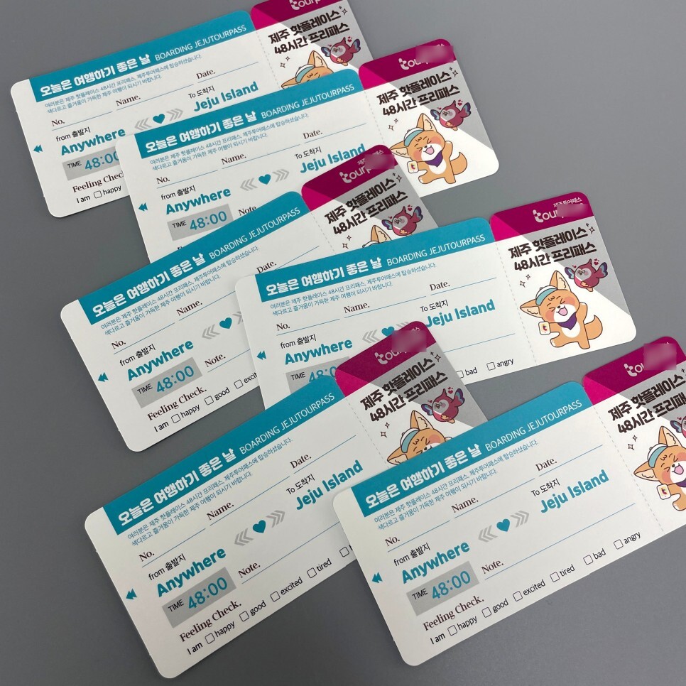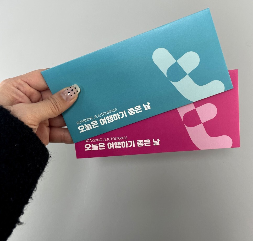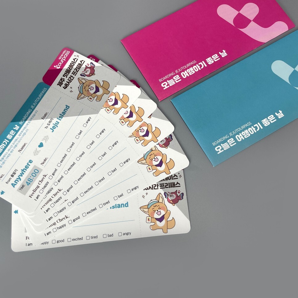 한 여행사에서 제작해 주신 티켓과 봉투 세트 인쇄물을