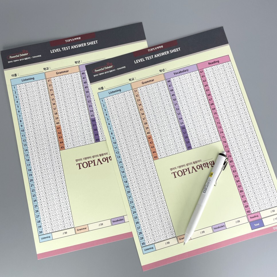 오늘은 이렇게 시험지 형태가 아닌 레벨테스트지 형태로
