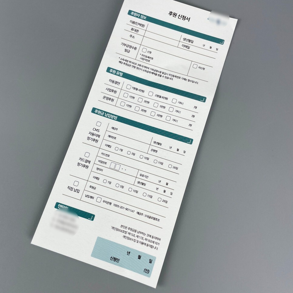 한 장짜리 전단 리플릿은 후원 신청서를 만들었습니다.