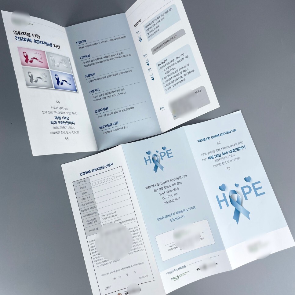 리플릿에 후원 신청서를 함께 넣은 디자인입니다.