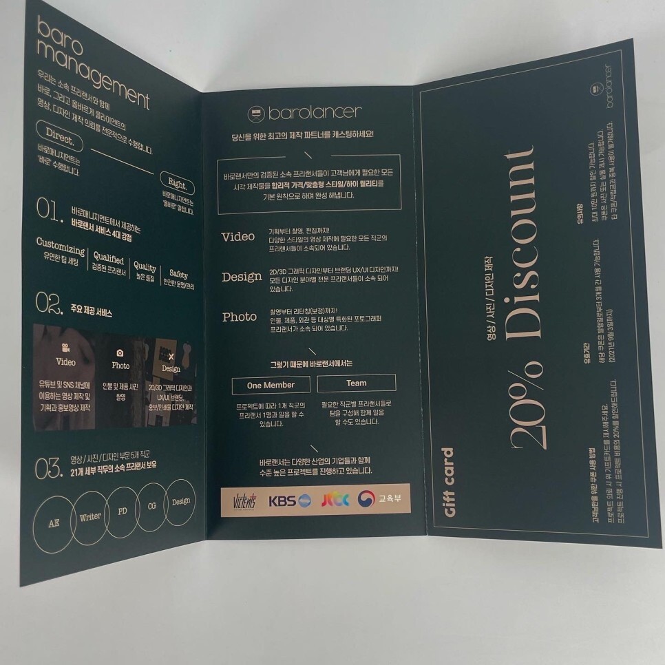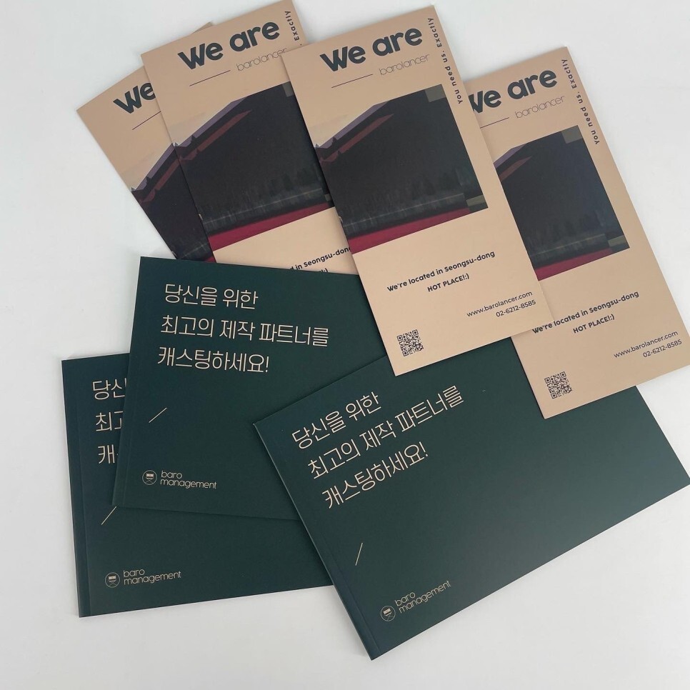 바로매니지먼트에서 회사소개 카탈로그 및 이벤트 리플릿을 제작 의뢰 주셨습니다.