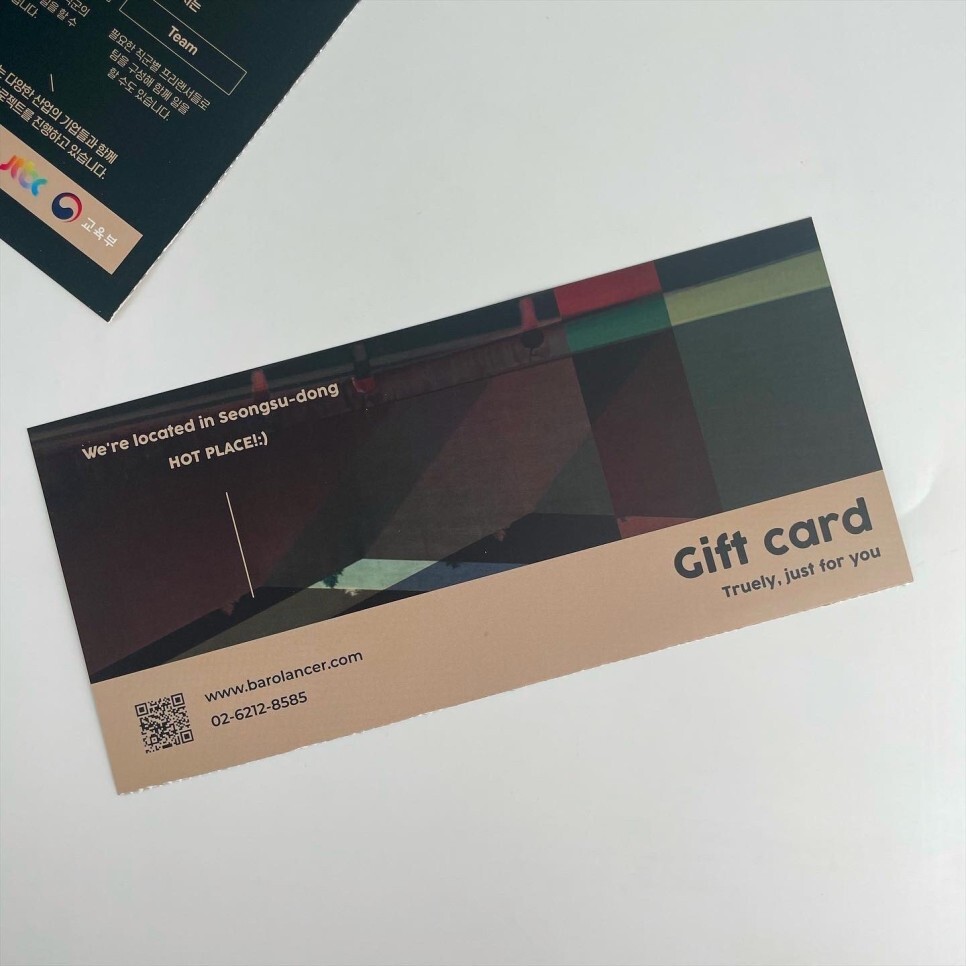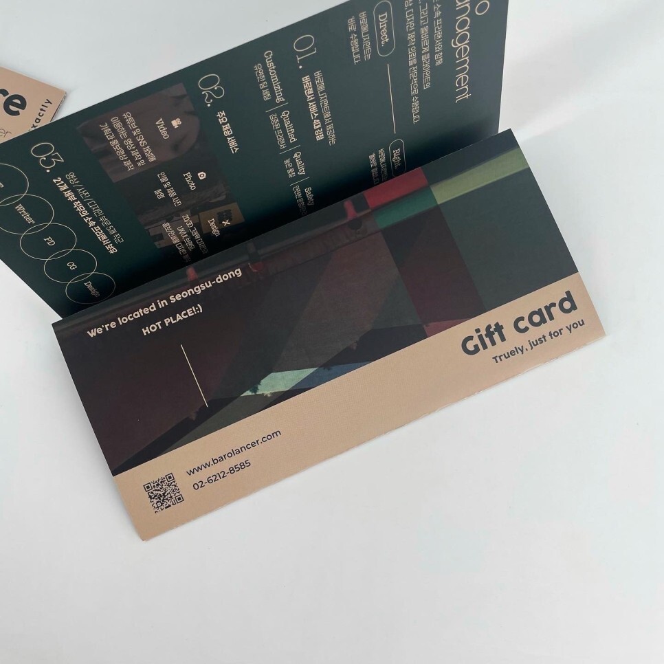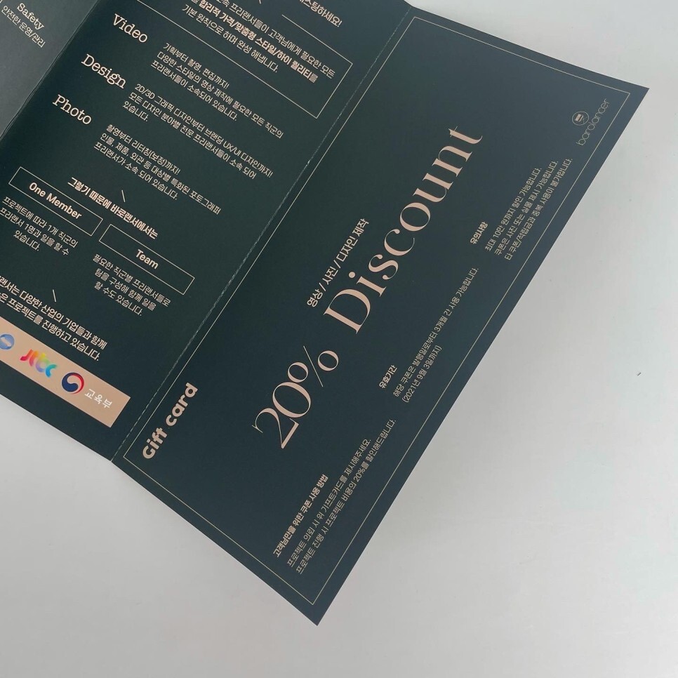 모두 정말 예쁜 3단 리플릿이 한 장의 상품권처럼 디자인된