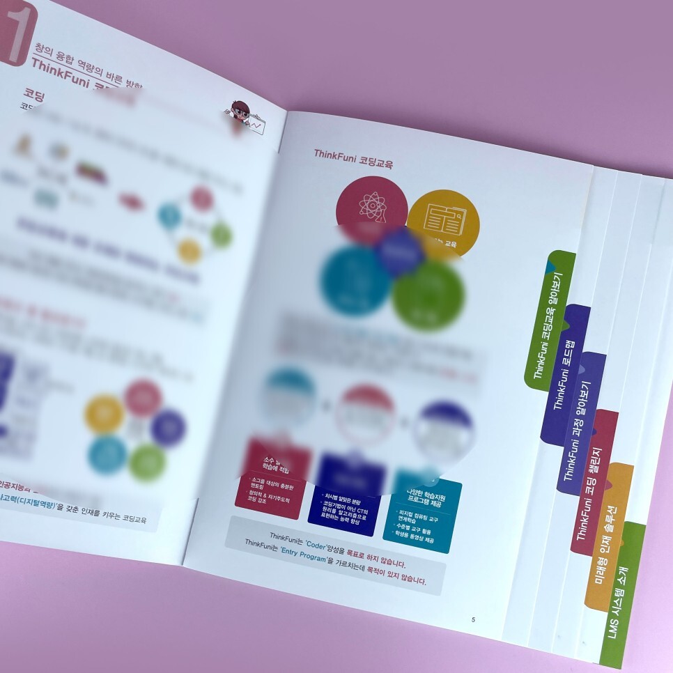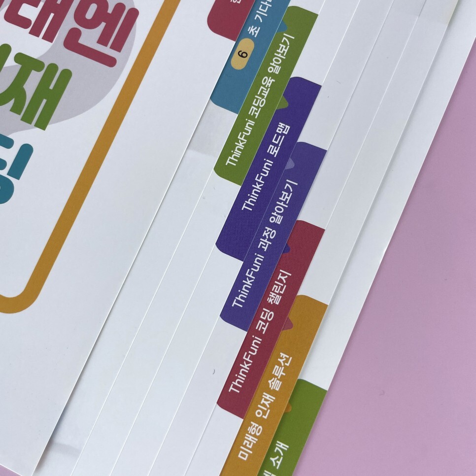 오른쪽에 보이는 페이지마다 컬러별 인덱스 디자인을