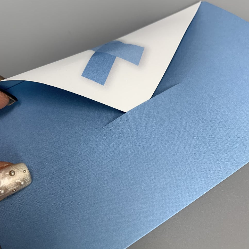 리플릿에 칼선을 만들어 봉투의 뚜껑 부분을 끼울 수