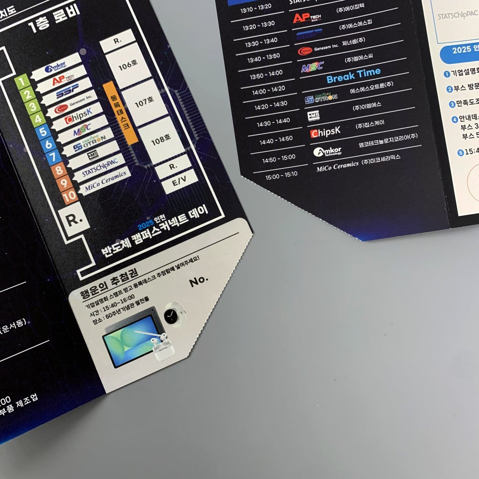 리플릿 한편에 행운의 추첨권을 넣은 디자인입니다.