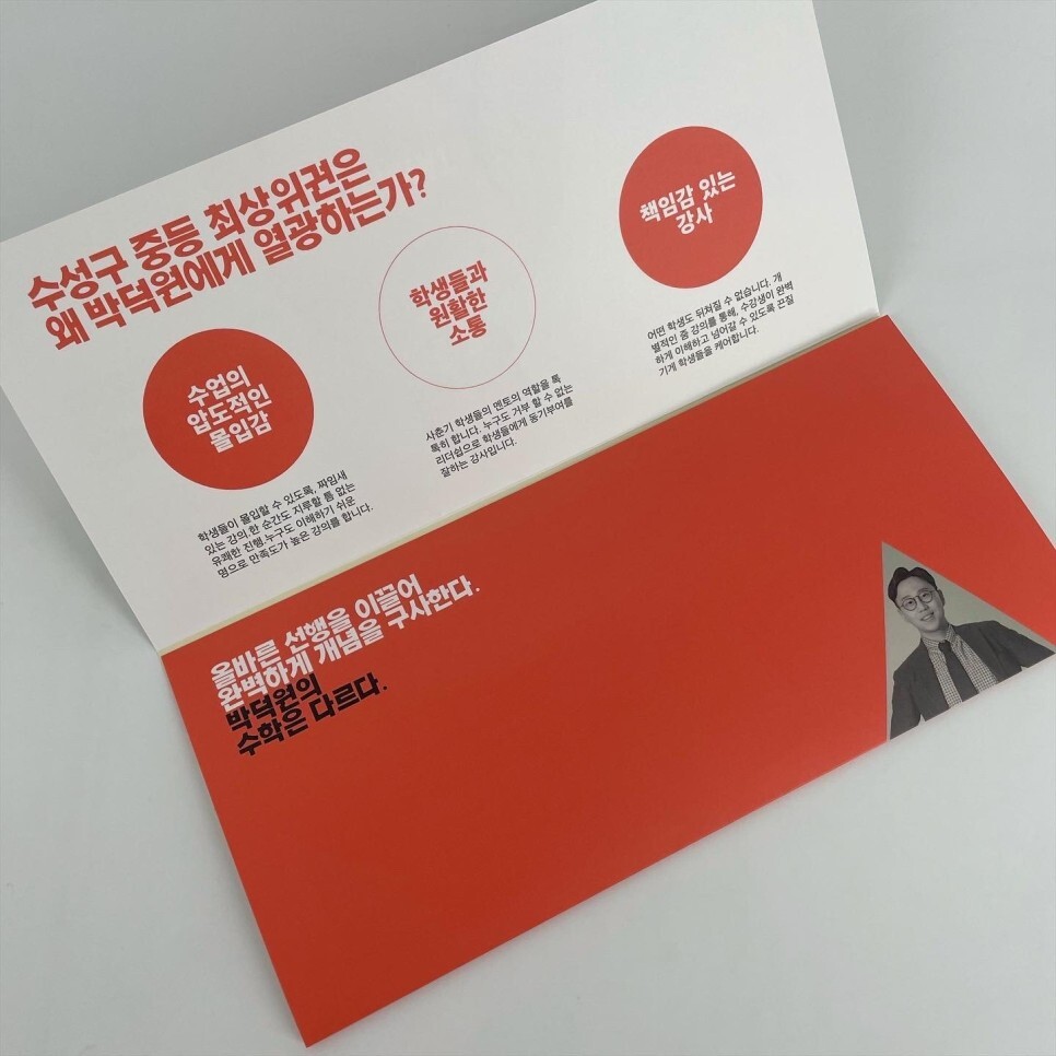 한 면은 온전히 리플릿을 펼쳤을 때 안쪽의 내용물을
