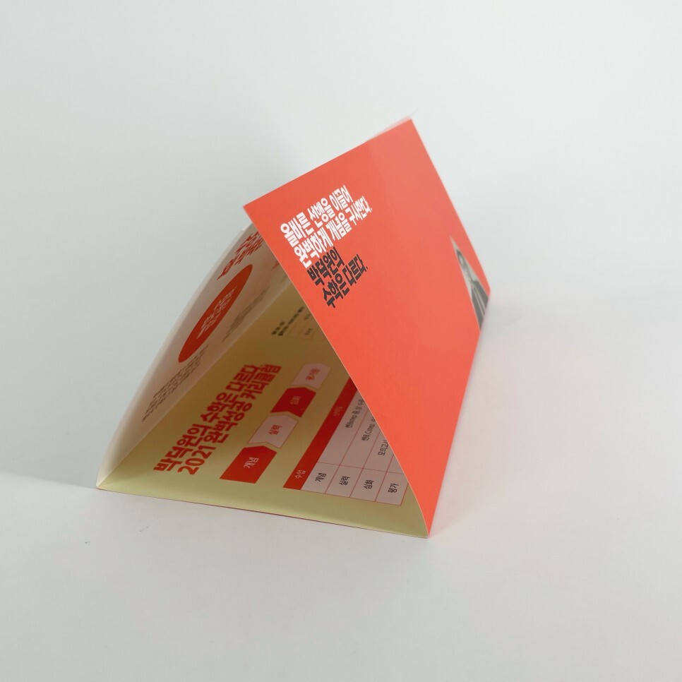 인쇄하기 때문에 리플릿이 접힌 모습의 앞/뒷면은