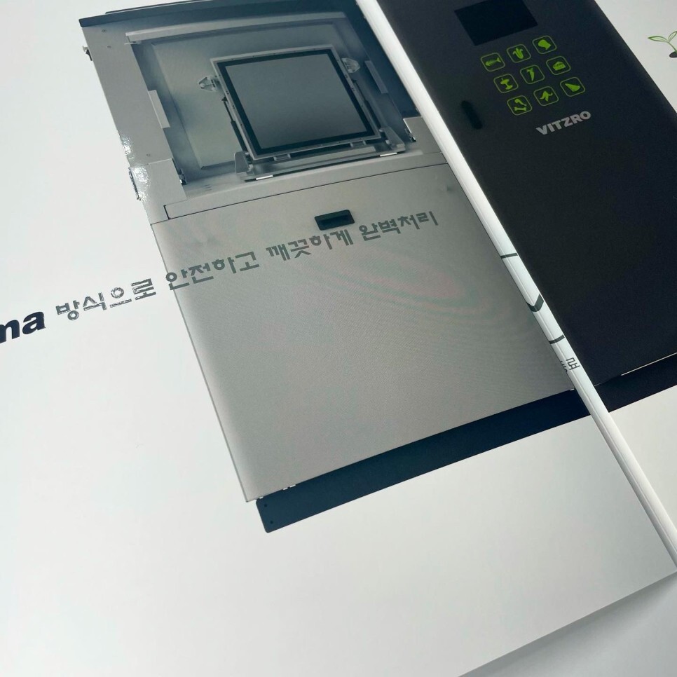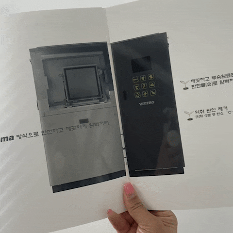 4단 대문접지로 양문형 냉장고 열듯 양쪽 면을 열어주면 활짝 펼쳐지는 리플릿입니다.