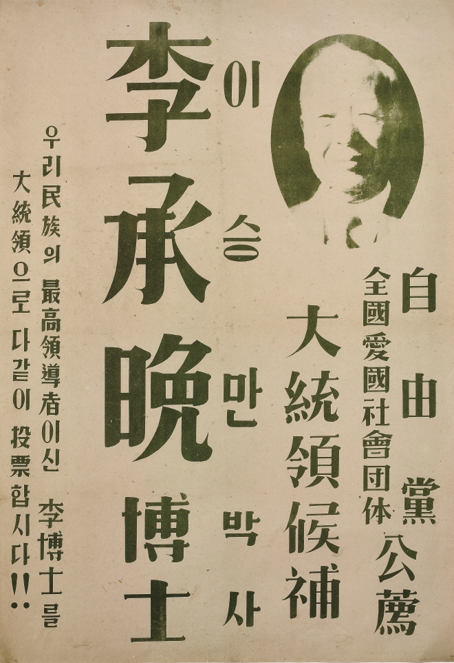 1952년 2대 대통령 선거 당시 이승만 후보의 벽보는 가로 55cm, 세로 80cm. 지금 기준으로 보면 꽤 큰 종이인데, 내용은 온통 세로쓰기 한자였습니다. 한글이 아니라 한자로 쓰인 벽보를 국민들이 얼마나 읽을 수 있었을지는 의문이지만, 그게 당시의 '공식적인' 분위기였습니다.