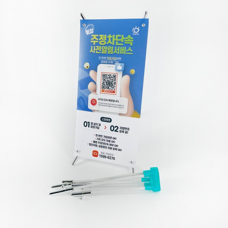 배너는 이렇게 거치대와 구멍이 뚫린 POP 용지가 함께