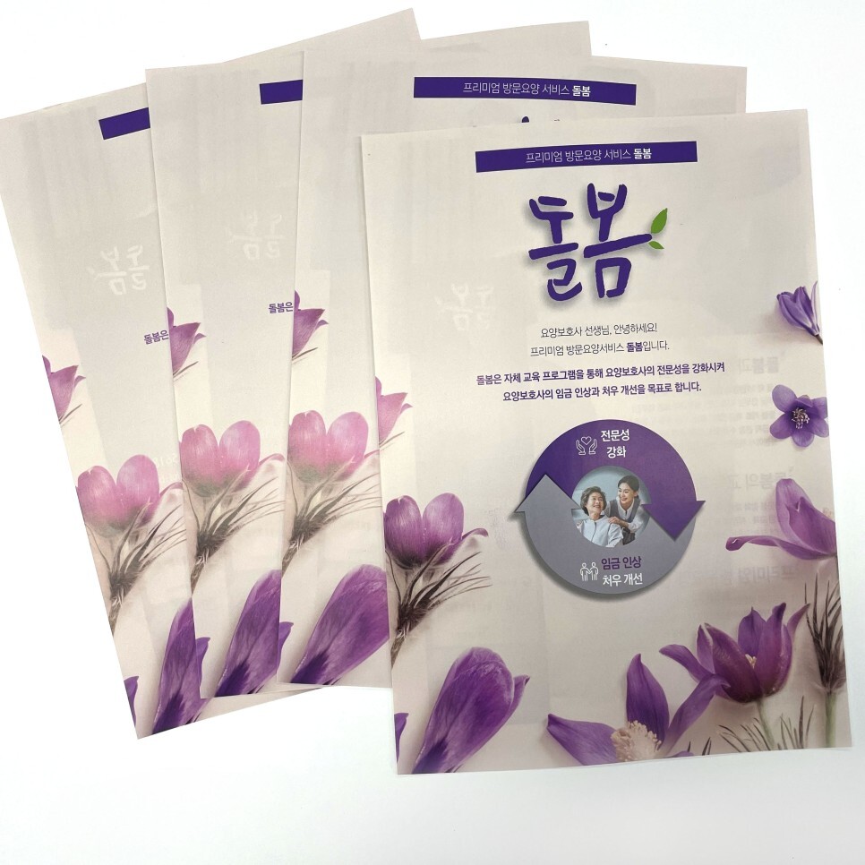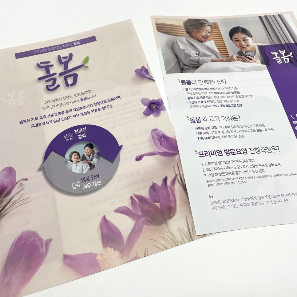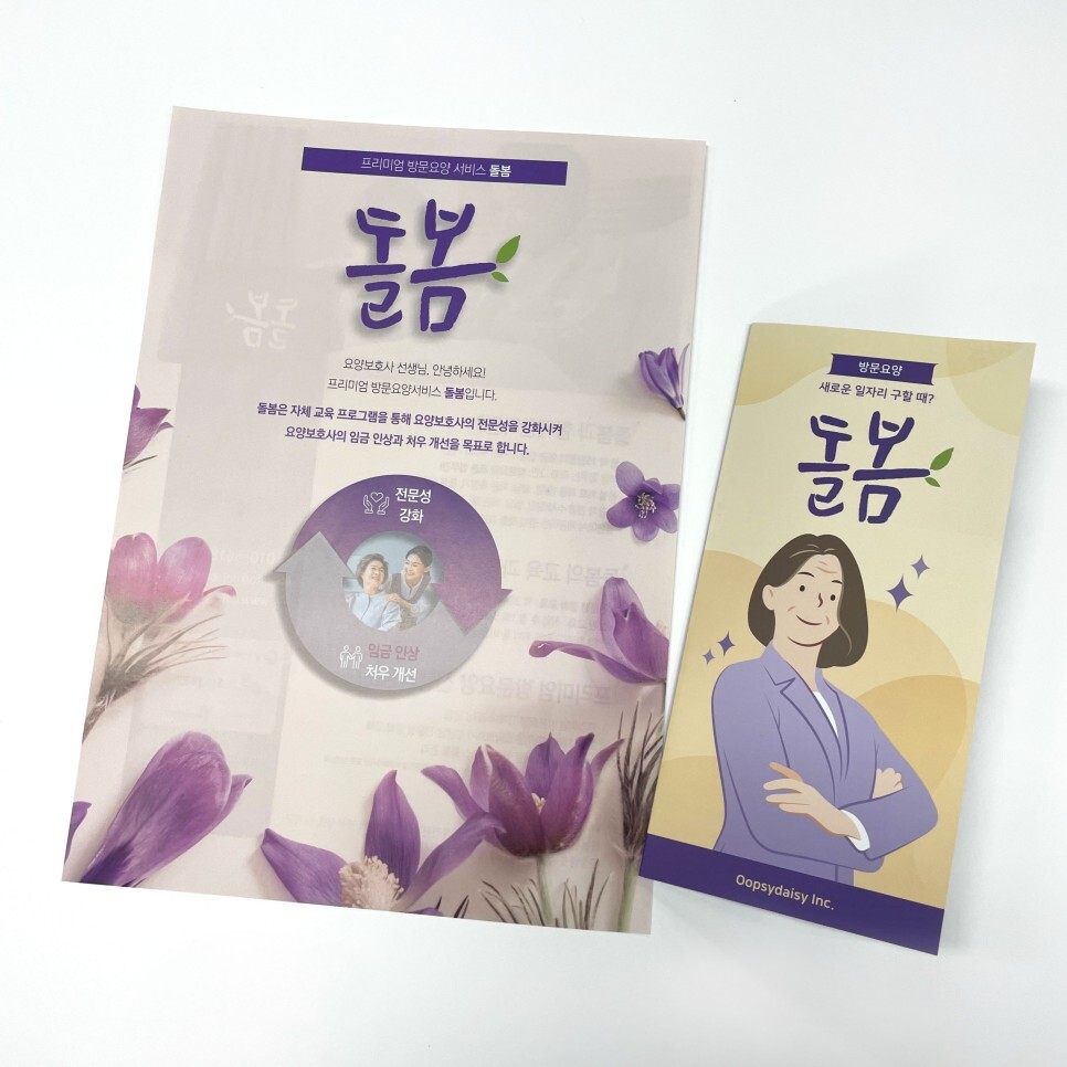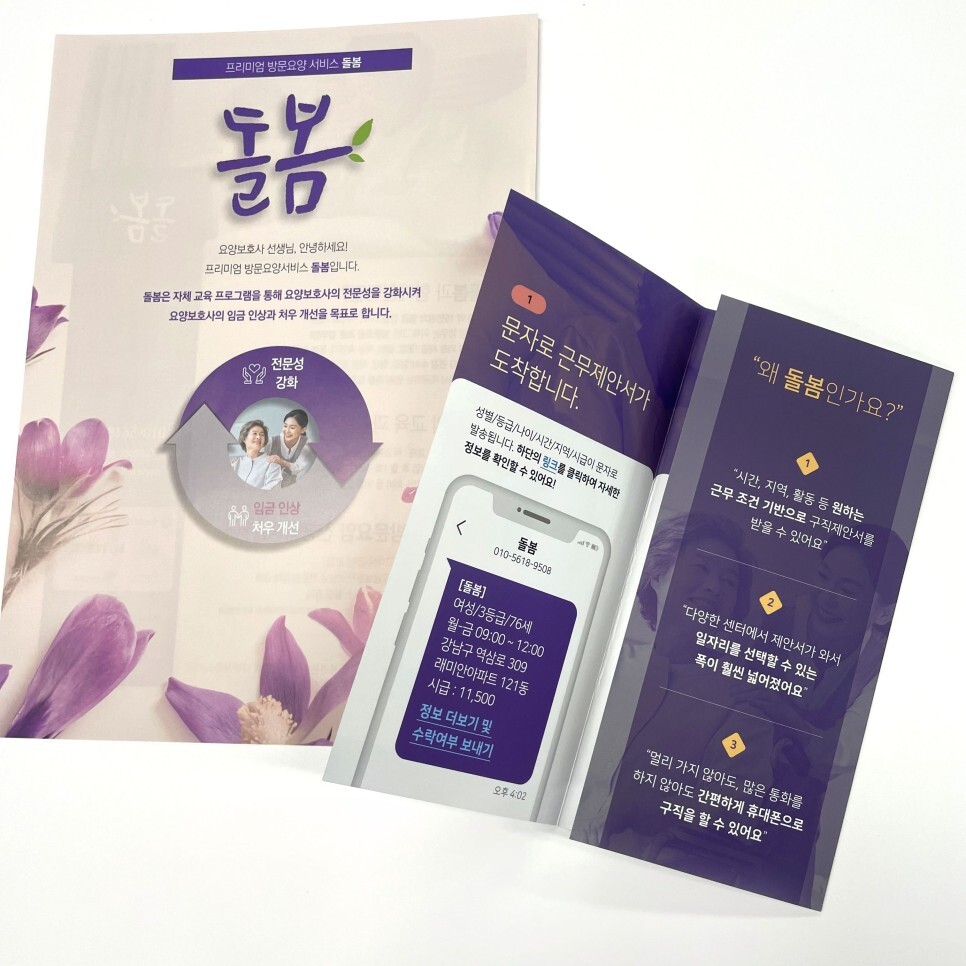 돌봄이라는 로고가 보라색으로 들어가 있고,
