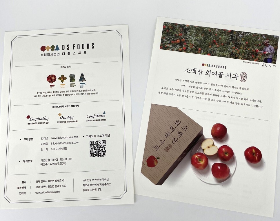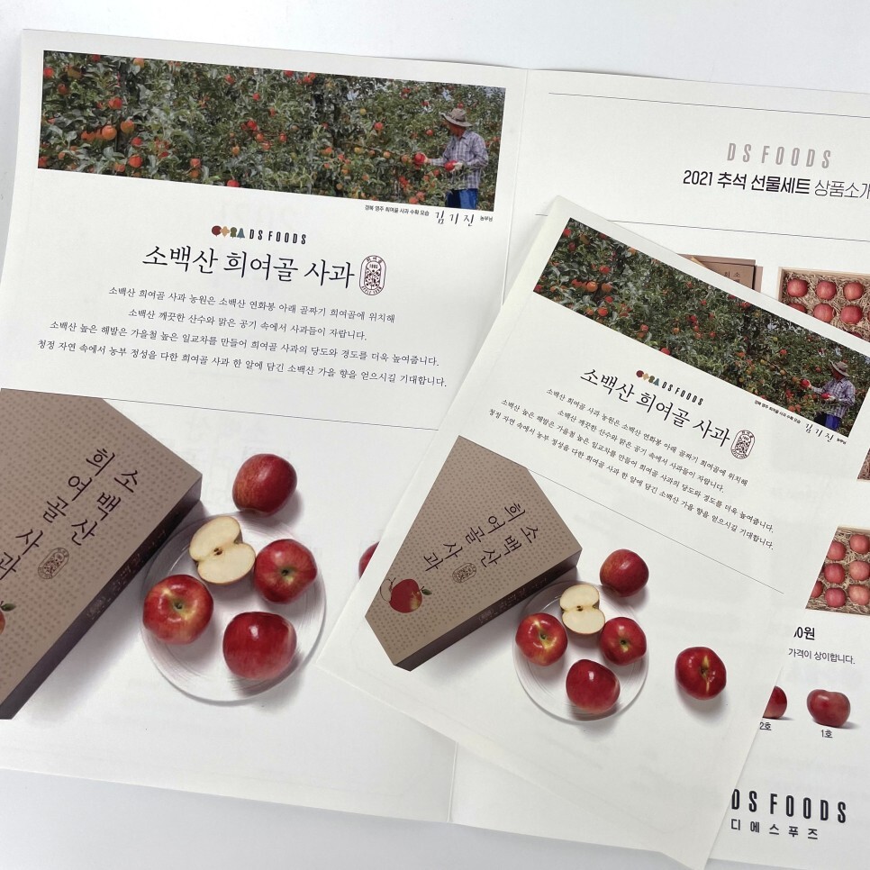 오늘은 그중 사과 선물세트에 관한 리플릿과