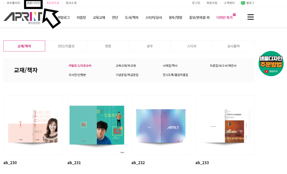 이렇게 홈페이지 내에서 샘플 디자인을 클릭하시면