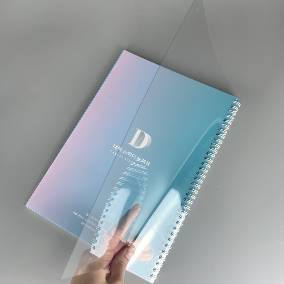 안녕하세요 에이프린트입니다. 오늘은 스프링 노트 인쇄에 대해 소개 드리겠습니다. 보통 스프링 노트 제작은 학원에서 가장 많이 의뢰 주시는 인쇄물 중 하나입니다. 스프링 노트는 다양한 용지로 제작이 가능하며, 보통은 표지의 두께를 250g 이상으로 두껍게 인쇄하기 때문에 하드커버를 사용해 표지 제작을 많이 하게 됩니다. 학원에서 학생들이 쓰는 교재로 2가지 버전의 컬러와 흑백으로 제작하였습니다. 표지는 두 가지 모두 스노우200g 으로 각각 양면유광코팅과 단면무광코팅으로 제작했습니다. 내지는 백색모조 80g의 디지털 윤전 인쇄 작업을 했습니다. 앞 요지와 뒤표지에는 투명 아스테지를 추가해서 표지면의 훼손과 오염을 방지했습니다:) 스프링 제본을 하게 되면, 책을 완전하게..